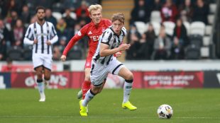 Photo: Saint's Mark O'Hara races out of midfield to start an attack