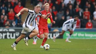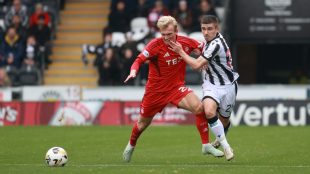 Photo: Aberdeen's Richard Jenson and Saint's Declan John in a tussle for the ball