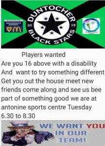 Duntocher Blackstars open recruitment drive for players with disabilities